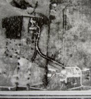 The dominant main mansion was destroyed by fire and is now disappeared as part of a development, its coach house was moved to St Charles Blvd to be used as a church and is now destroyed, one of the statues that stood at the entrance to the rose garden is now in the Library, the other one not surviving through time, and only the farm barn remains standing.